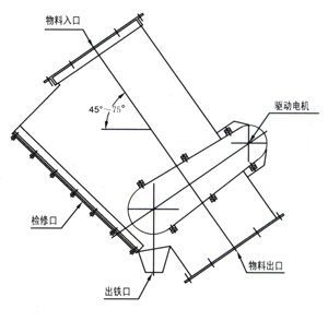 工作原理:串接于傾角45-75度的物料輸送管道中,當物料流經(jīng)該除鐵器時,其中的鐵磁性物質被吸附到管道除鐵器的不銹鋼管壁上,隨永磁體的移動而逐漸向出鐵口方向滑動,實現(xiàn)與物料分離。在出鐵口處,因永磁體沿循環(huán)運動方向移開,鐵磁性物質失去磁力吸引,在重力的作用下從出鐵口排出,實現(xiàn)物料的自動除鐵。